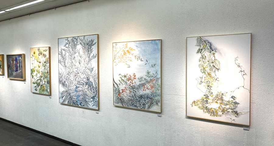佐々木さんは、「メンバーそれぞれ絵のタイプが異なるので、互いの作品を見ること自体が勉強になります。一人ではなくみんなで励まし合えるのが何よりの魅力」と、グループ展の意義を強調します。また「髙田先生をはじめ、中川知美先生、森井宏青先生など、恩師の方々が毎回足を運んでくださるのが大きな励み。卒業後も変わらず見守ってくださることに、心から感謝しています」と、ふたりは口を揃えます。