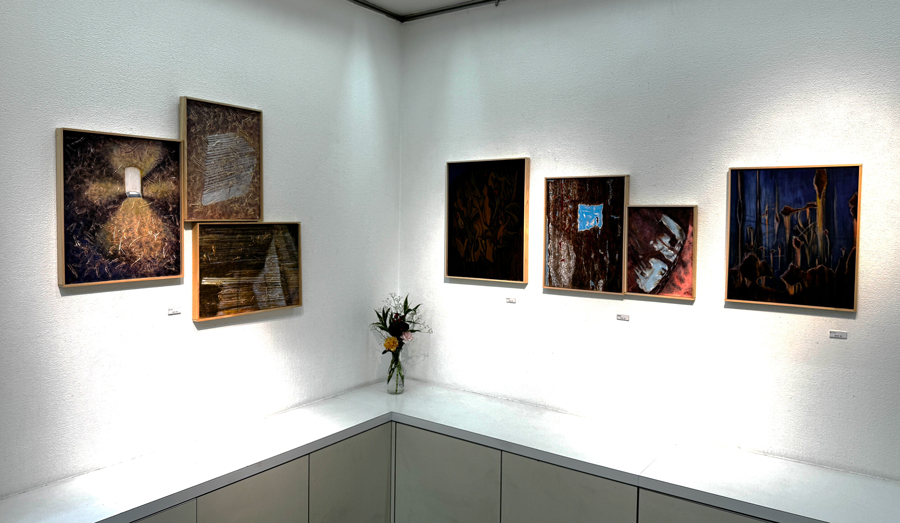 一方、佐々木さんは、散歩中に見かける花や光に照らされた錆など、日常の風景に潜む瞬間的な美を表現。「画廊が多いこのエリアで展示することで、プロの画家や一般の来場者、修学旅行中の高校生など、様々な人の意見を聞けるのが楽しいですね」と、外部との交流も創作の刺激になっていると話します。