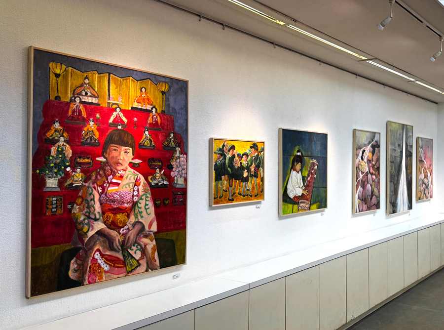 (左から3点)どこか懐かしい子どもたちの姿を描いた宮口あずささんの作品。日本の四季の移り変わりや時の流れが育む命の物語を表現
